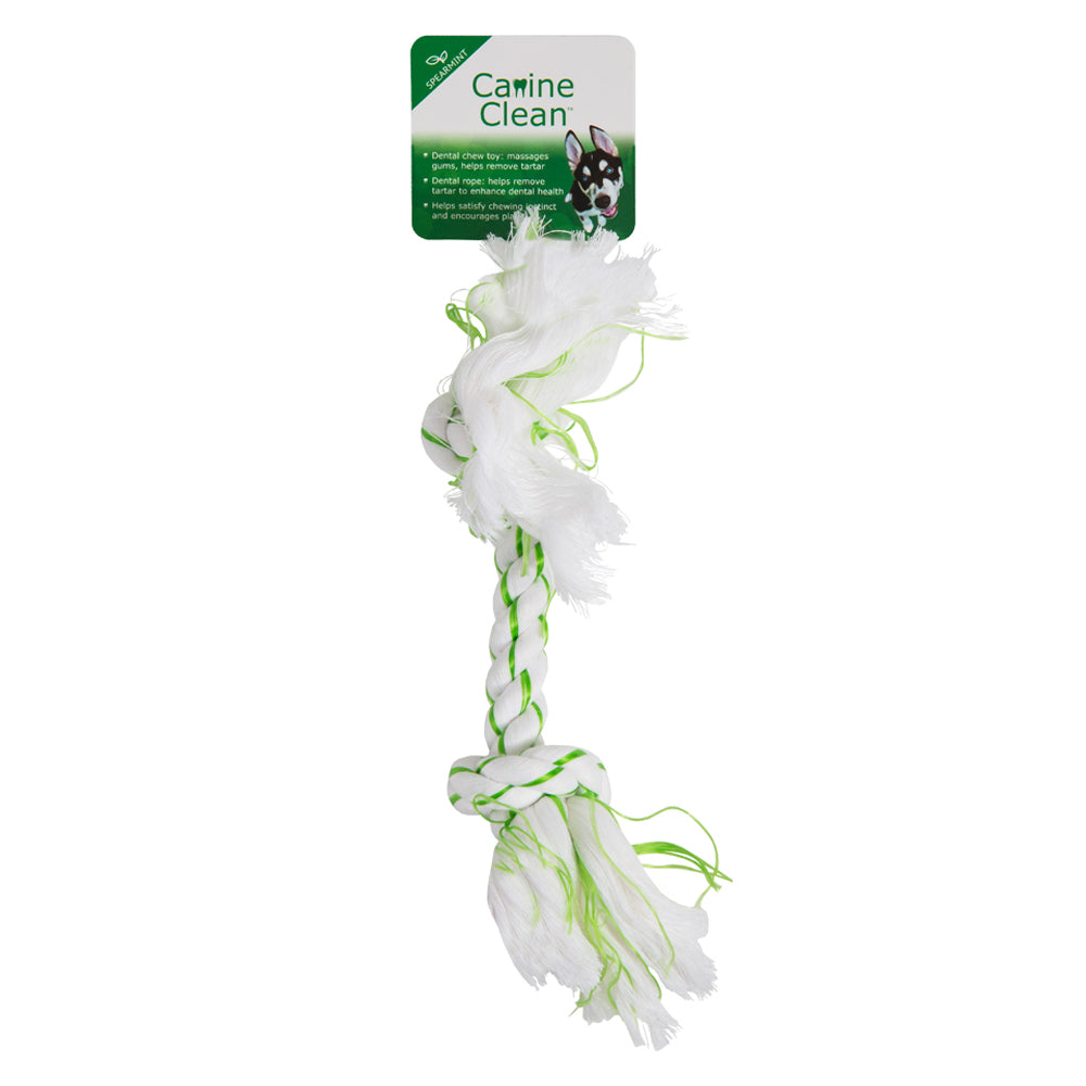 The Canine Clean 12'' Dental Rope Bone is the perfect dental chew toy for your furry friend. This dental rope bone is not just a toy, but an essential accessory designed to improve your dog's dental hygiene.