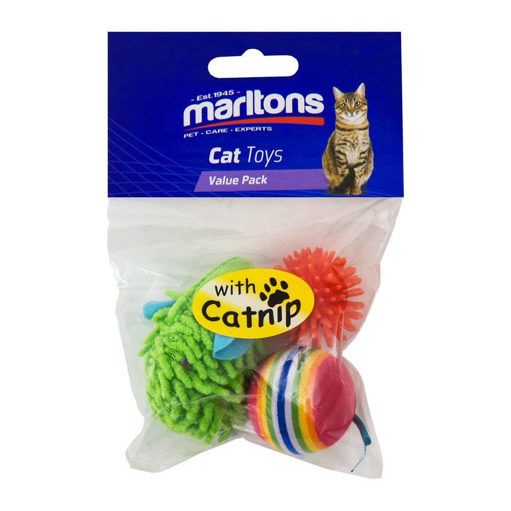 If you're looking for a toy pack that will keep your cat entertained and happy, the Marltons Cat and Kitten Toy Value Pack is the perfect choice. With its 3 colorful mice, 3 balls, and a plush pillow filled with catnip, your cat will have endless hours of fun and playtime.