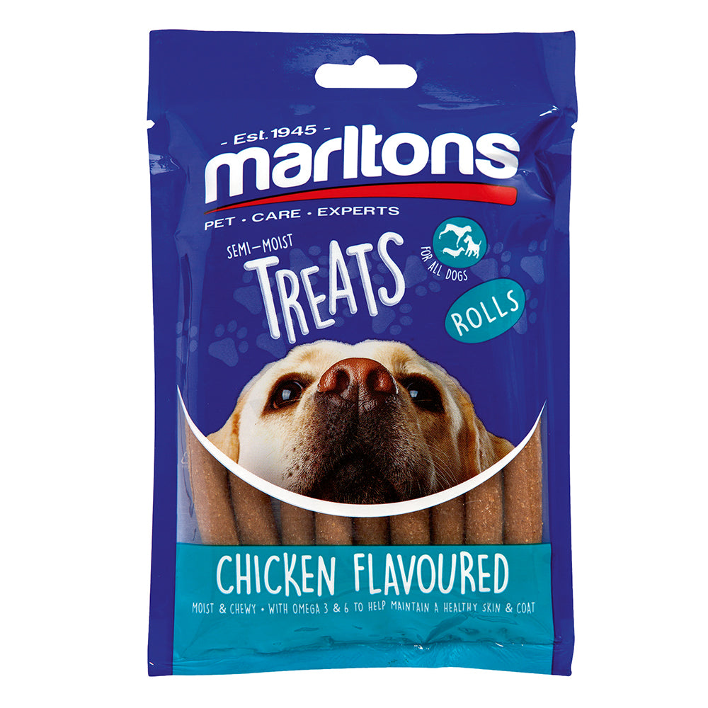 Spoiling your dog? Absolutely! Marltons Chicken Flavoured Rolls are a delicious way to show your love. These moist, chewy treats are packed with Omega 3 & 6, helping to keep your dog’s skin healthy and their coat shiny.