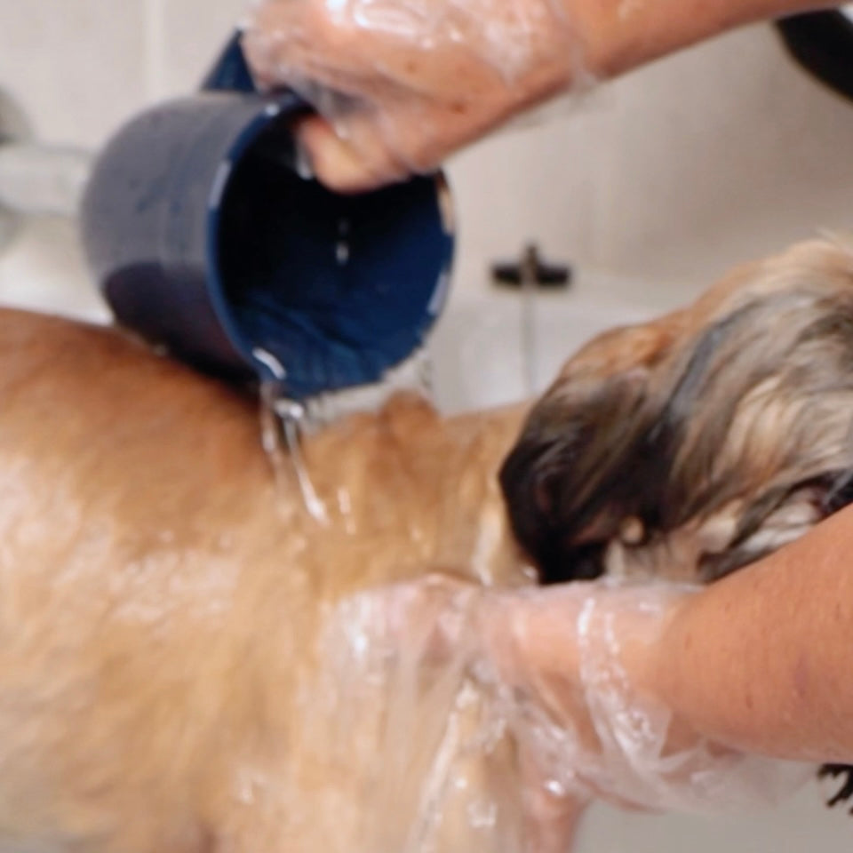 Apply shampoo directly onto the coat and work into a rich lather, rinse thoroughly after use.