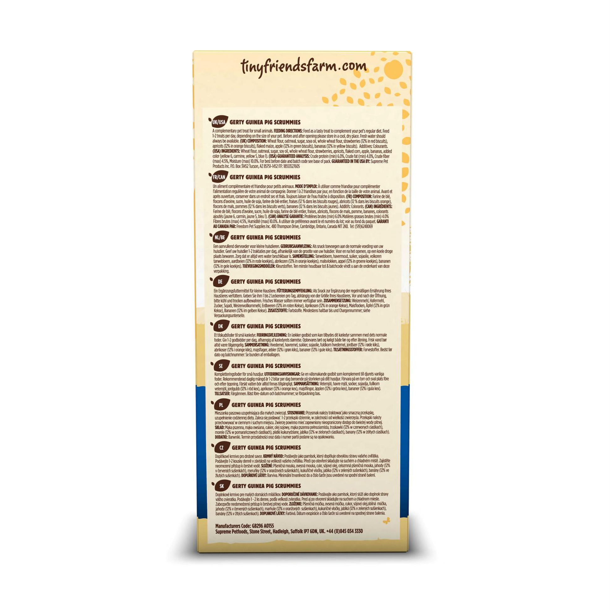 Gerty Guinea Pig Scrummies are perfect when you want to give your pet a tasty treat. They can be carefully hand fed to your pets, helping you to build those special moments together. One or two can also be hidden around your pet’s enclosure to encourage natural foraging. And remember to give your guinea pigs lots and lots of fresh hay every day! Gerty Guinea Pig Scrummies are also suitable for rabbits, chinchillas, hamsters, gerbils, mice and rats.