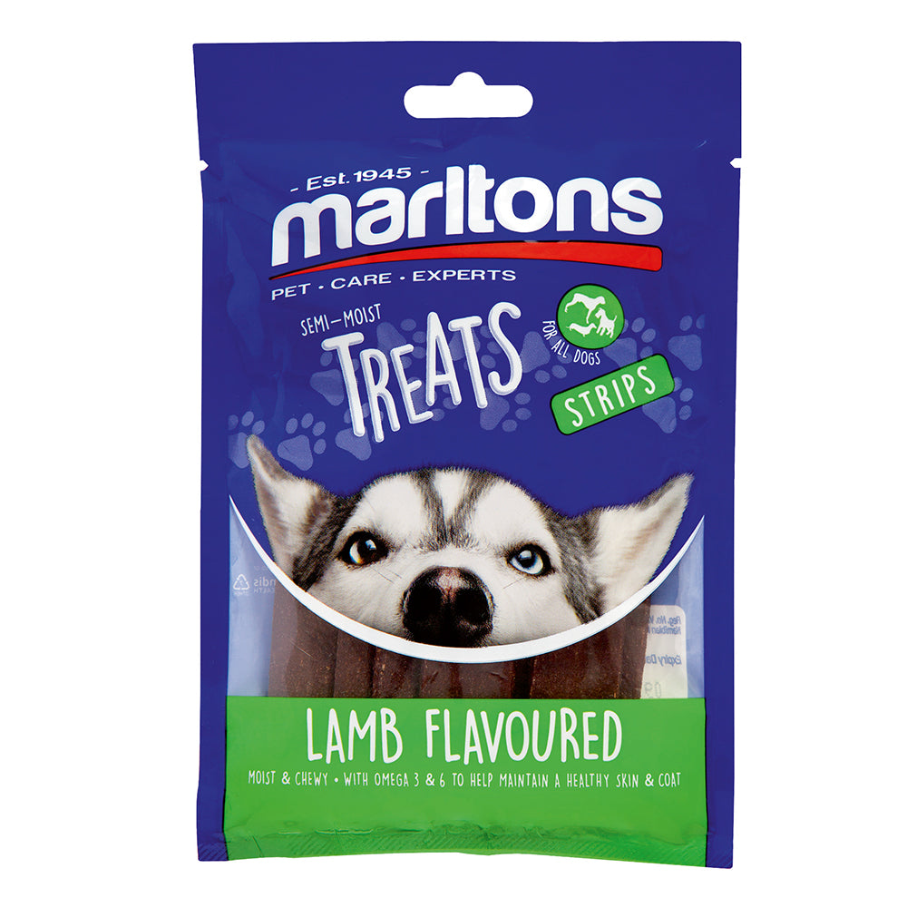 Watch your dog light up with excitement for Marltons Lamb Flavoured Strips! Soft, chewy, and full of irresistible flavour, these treats are made for happy tails and healthy coats.