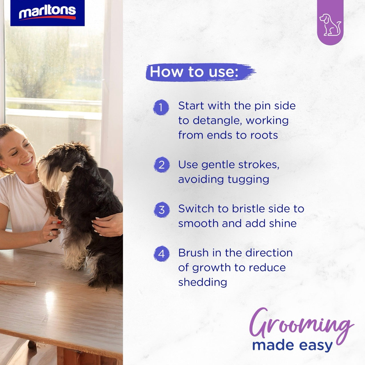 The Marltons 2-in-1 Pin & Bristle Brush is the all-in-one solution for your pet’s daily grooming routine. Designed to detangle, smooth and enhance coat health, this dual-sided brush helps keep your pet looking and feeling their best – all with one easy-to-use tool.