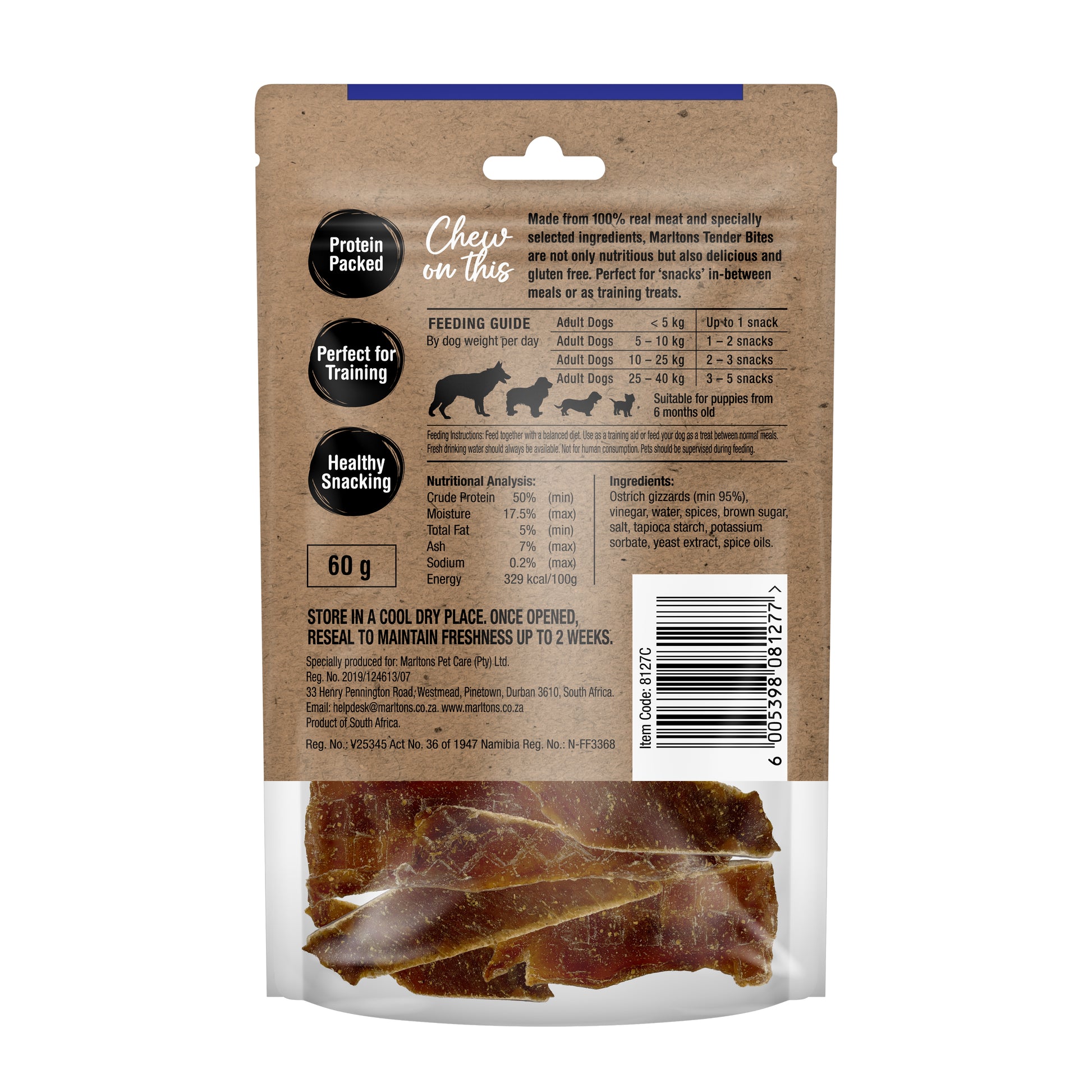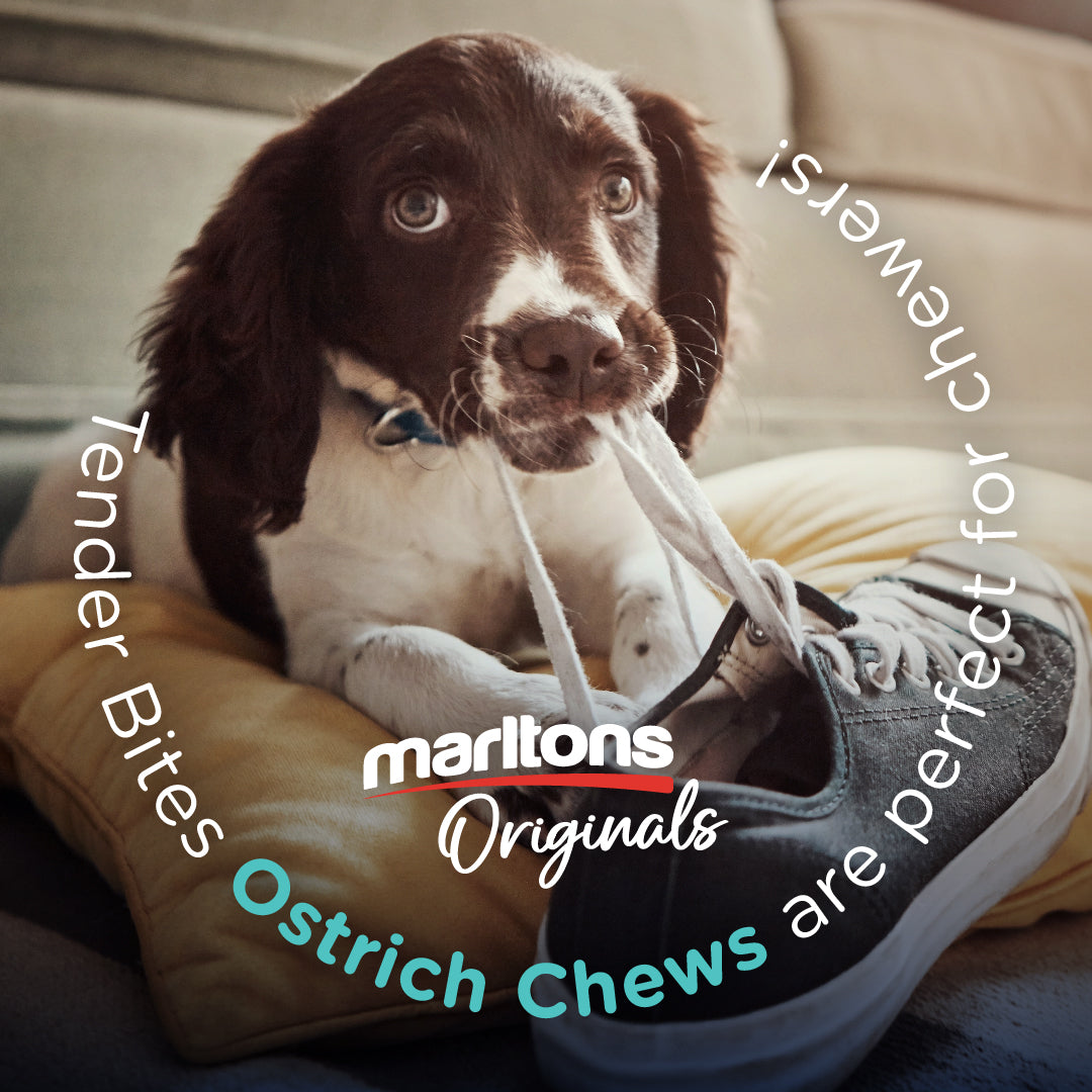Marltons Originals Tender Bites are crafted to deliver exceptional taste and quality. Made from 100% Real Ostrich Meat, these high-value treats are ideal for training, rewarding good behaviour, or meeting your dog’s nutritional needs. These soft are designed to support your pet’s wellness while enhancing your training and bonding experiences. With simple, high-quality ingredients and a focus on nutrition, these treats offer a reliable option for everyday use.