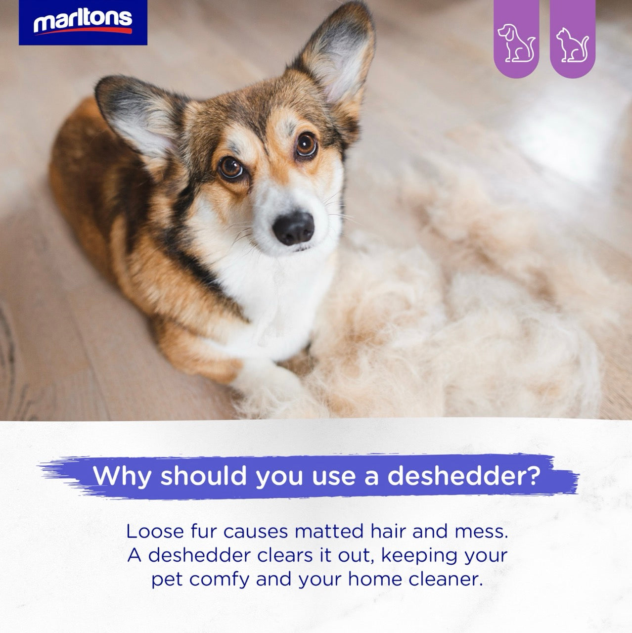 The Marltons Self-Cleaning Deshedding Brush is your go-to solution for reducing loose fur, undercoat buildup and seasonal shedding - all while strengthening the bond between you and your pet. Perfect for dogs and cats of all coat types, this deshedding brush glides through fur to remove excess hair and dander, promoting a cleaner home and a healthier, shinier coat.