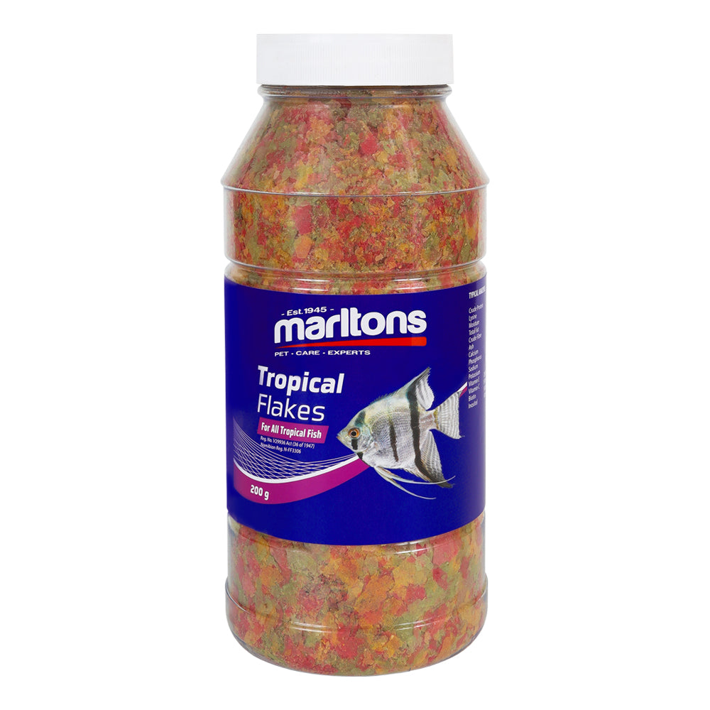 Marltons Tropical Flakes is a high-quality food specially formulated to meet the nutritional needs of tropical fish. This dry flakes fish food is also suitable for ornamental fish such as tetras, barbs, gouramis, livebearers, and small cichlids.
