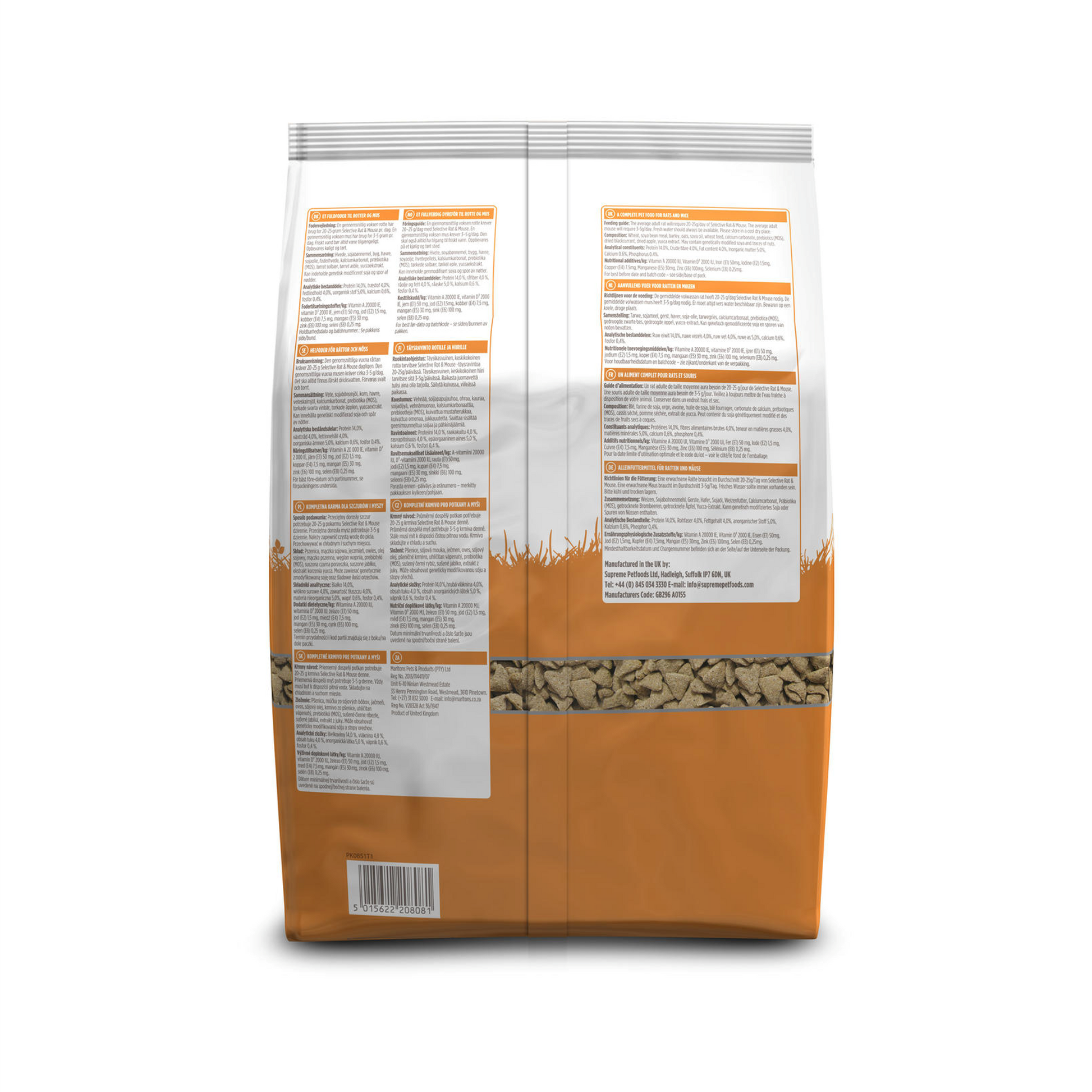 Wheat, soya bean meal, barley, oats, soya oil, wheat feed, calcium carbonate, prebiotics (MOS), dried blackcurrant, dried apple, yucca extract. May contain genetically modified soya and traces of nuts.