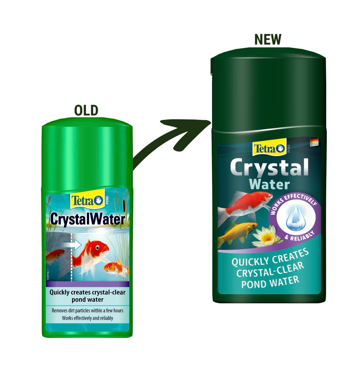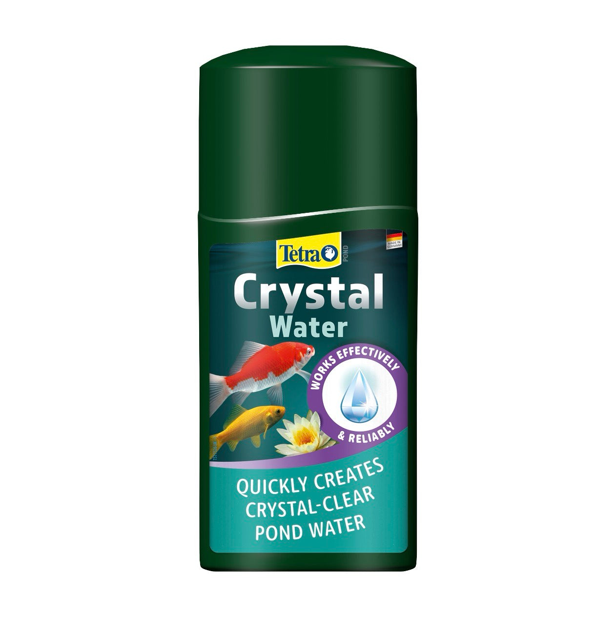 Tetra Pond CrystalWater quickly and reliably clears cloudiness in aquarium water caused by dirt particles, making the water crystal clear within hours. It uses carefully selected minerals to gently eliminate various dirt particles, with initial effects visible in two to three hours and complete clarity achieved within six to twelve hours.